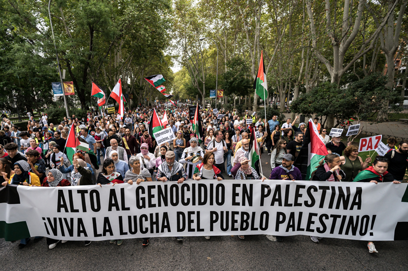 İspanyol STK'lar yayımladıkları manifestoda, İspanya hükümetine ve diğer Avrupa Birliği ülkelerine İsrail ile diplomatik, askeri, ekonomik, siyasi, kültürel tüm ilişkileri kesme çağrısında bulunarak, "Soykırımı durdurmak için etkili önlemlere ihtiyacımız var. Uluslararası toplumun eylemsizliği İsrail'in cezasız kalmasına neden oluyor. Sessizlik, İsrail'in sahip olduğu cezasızlık rejimini körüklüyor. Bu sadece Filistin için değil, uluslararası düzen için de çok tehlikeli bir emsal teşkil ediyor." açıklamasında bulundu.
