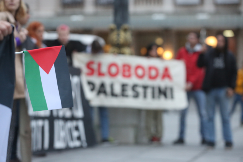 "Sırbistan'da Filistin Halkına Destek" isimli grup tarafından başkentteki Cumhuriyet Meydanı'nda düzenlenen gösteriye katılan kalabalık, "İsrail çocukları öldürüyor, ABD katilleri koruyor" yazılı döviz açtı.