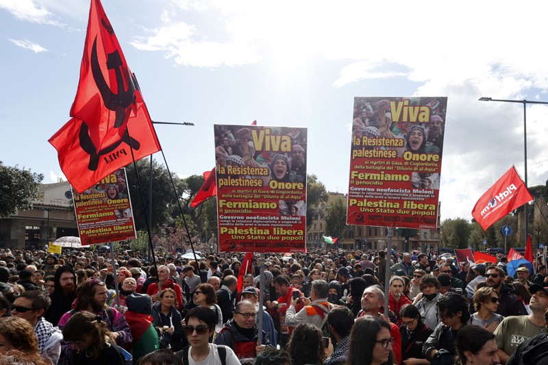 Güvenlik güçleri, geniş önlemler alarak Ostiense Meydanı'nın çıkışlarını kapattı. Göstericiler de bir süre sonra meydan içinde yürüyüşe geçti.