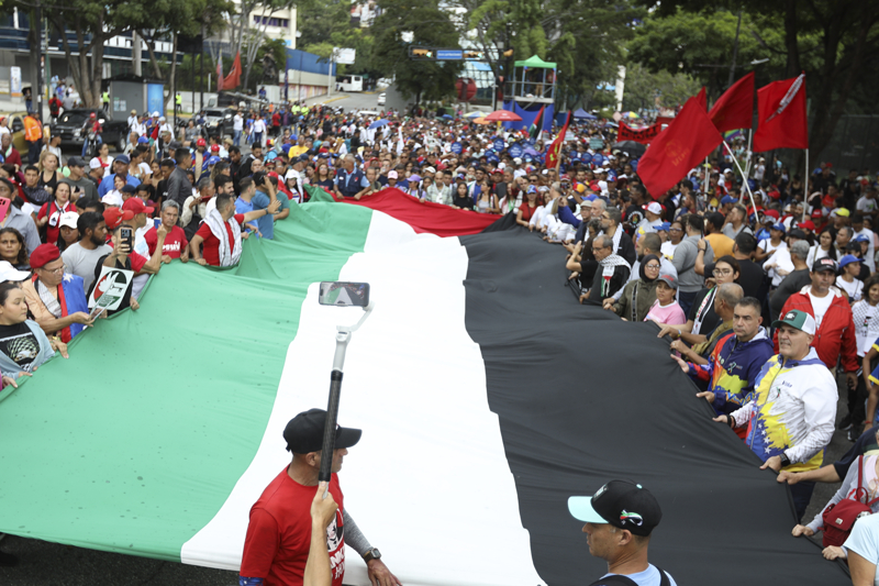 Venezuela'nın başkenti Caracas'ta Chavismo yanlıları, İsrail'in Filistin'e yönelik devam eden saldırılarını protesto etmek için toplandı.