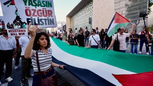 Filistin ve Lübnan bayrakları taşıyan protestocular, Gazze'deki "soykırımın" ve son günlerde Lübnan'da artan İsrail saldırılarının durdurulmasını istedi.
