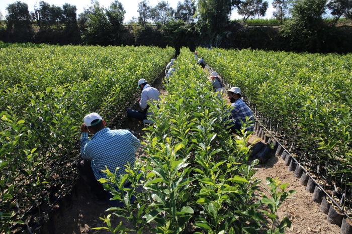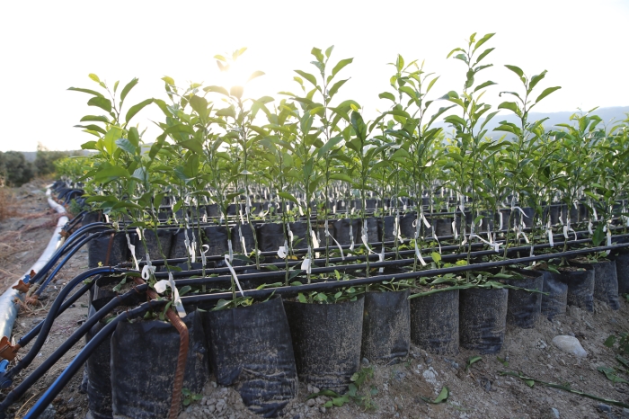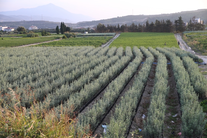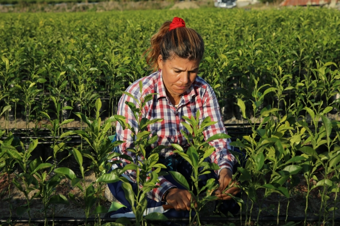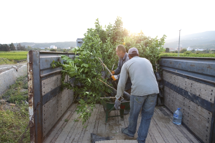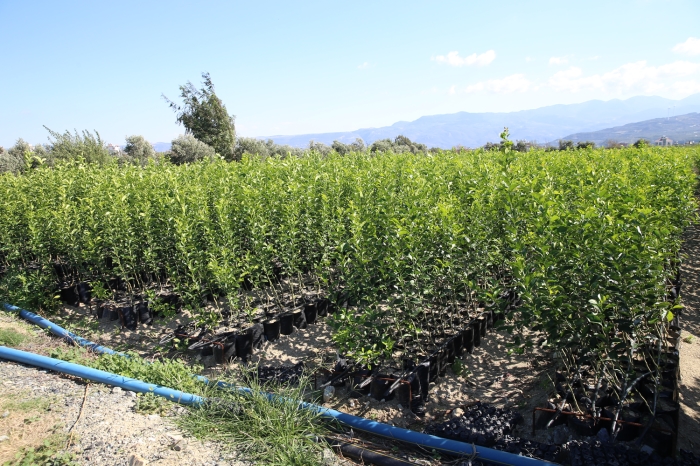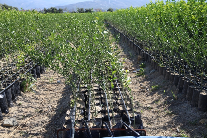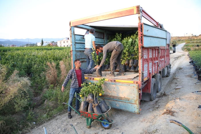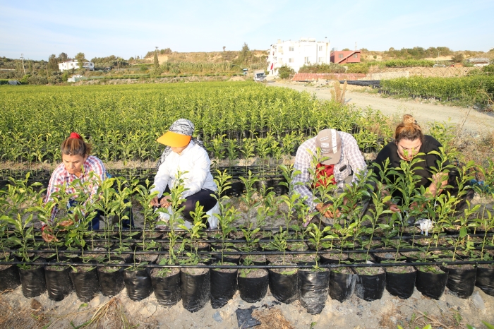 Fidanlı Mahallesi'ndeki yetiştiriciler, yurt içi ve yurt dışından yoğun talep aldıkları ve 26 çeşidini ürettikleri zeytin, nar ve narenciye fidanlarıyla markalaşmayı hedefliyor.