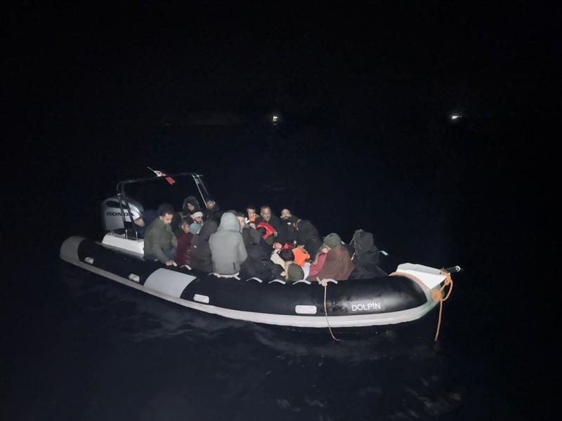 İzmir'in Dikili ilçesi açıklarında, Sahil Güvenlik ekipleri tarafından lastik bot içerisinde 7'si çocuk 20 düzensiz göçmen yakalandı.