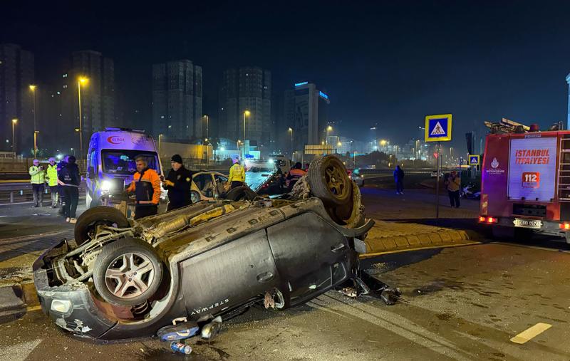 Çarpmanın etkisiyle savrulan 34 ZU 8831 plakalı otomobil savrularak ters döndü.