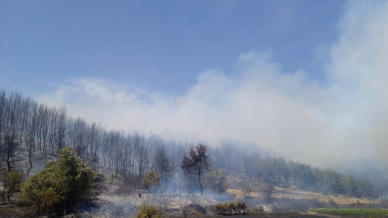 İlçeye bağlı Yalova köyü yakınındaki ormanlık alanda henüz bilinmeyen nedenle yangın çıktı.