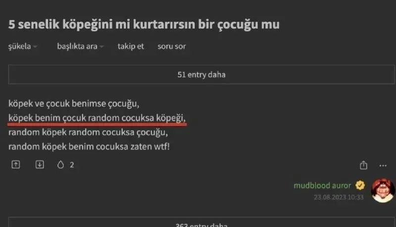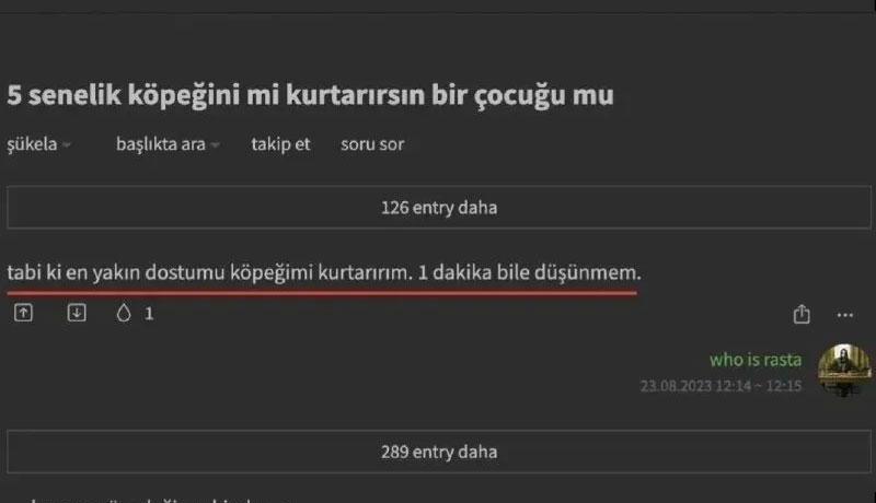 Ekşi Sözlük'te "5 senelik köpeğini mi kurtarırsın bir çocuğu mu?" adı altında açılan başlıkta insana nefret kusuldu. Sosyal medya kullanıcıları olaya tepki gösterdi.