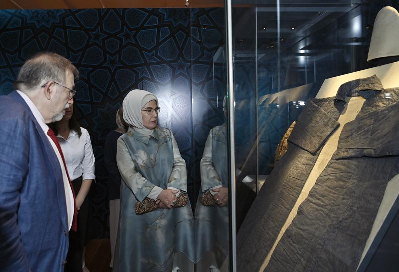 Döneminin özgün estetik ve teknik özelliklerinin yansıtıldığı sergiyi çok beğendiğini kaydeden Emine Erdoğan'a, bazı milletvekilleri ve Cumhurbaşkanı Başdanışmanı Sefer Turan eşlik etti.