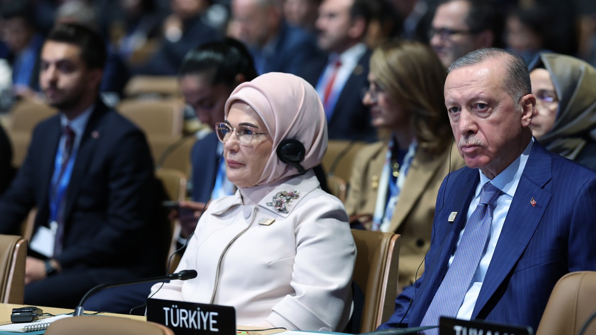 Zirve'nin yapıldığı COP29 Konferans Salonu'nda ise Azerbaycan Cumhurbaşkanı Aliyev'in eşi Mihriban Aliyeva, Emine Erdoğan'a sarılarak, "hoş geldiniz" dileklerini iletti.