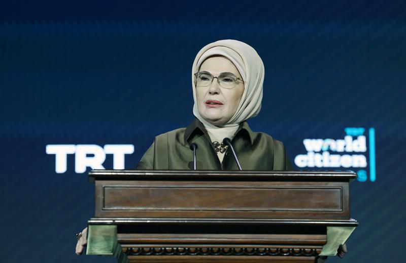 Emine Erdoğan, "Pozitif Değişime İlham Olmak" ilkesiyle düzenlenen "TRT World Citizen Awards" programında yaptığı konuşmada, insaniyetin bir dili, rengi ve coğrafyası olmadığını hatırlatan çok özel bir buluşma için bir arada olduklarını söyledi.