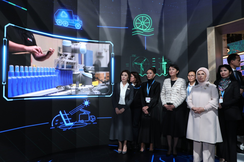 Azerbaycan Cumhurbaşkanı'nın eşi Mehriban Aliyeva, Özbekistan Cumhurbaşkanı'nın Eşi Ziroat Mirziyoyeva ve Kırgızistan Cumhurbaşkanı'nın Eşi Aigul Zhaparova ile beraber Sıfır Atık Vakfı ile Haydar Aliyev Vakfı'nın ortak pavilyonunu ziyaret eden Emine Erdoğan, "Sürdürülebilirlik konusundaki güçlü iş birliğimizin yansımalarını görmekten büyük bir memnuniyet duyduk" açıklamasında bulundu.