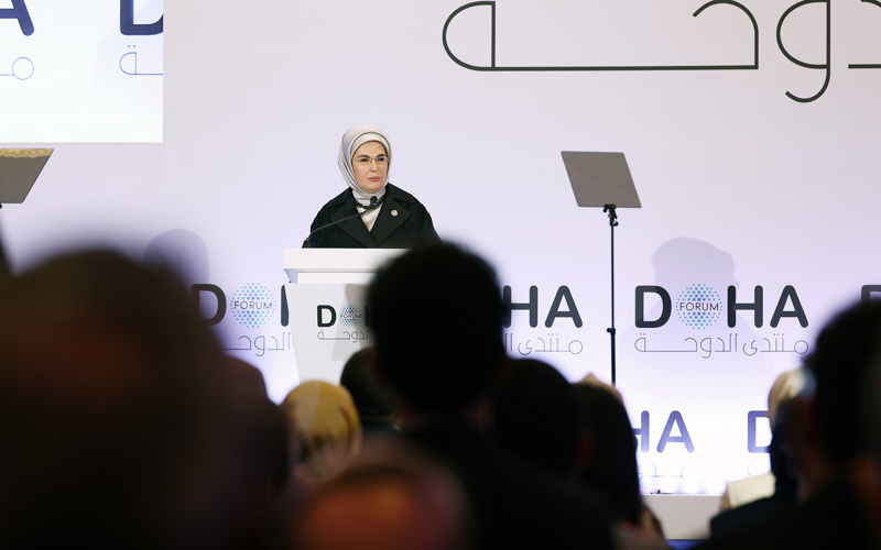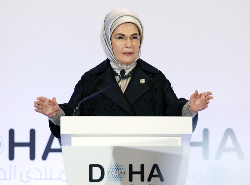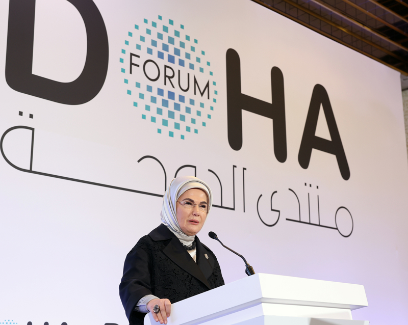 Emine Erdoğan, Katar'ın başkenti Doha'da "Doha Forum 2024" kapsamında düzenlenen "Filistin için tek yürek: İşgalin ve soykırımın karanlığında umudu koruma" oturumuna katıldı.