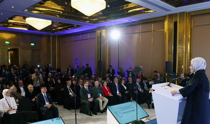 Yaklaşık 6 bin kişinin katıldığı forumda konuşan Emine Erdoğan, Filistinli çocukların Al-Şifa Hastanesi'nin önünde düzenledikleri basın toplantısıyla dünyaya "yaşamak istiyoruz, bizi koruyun" çağrısı yapmalarının üzerinden tam 395 gün geçtiğine dikkati çekti.