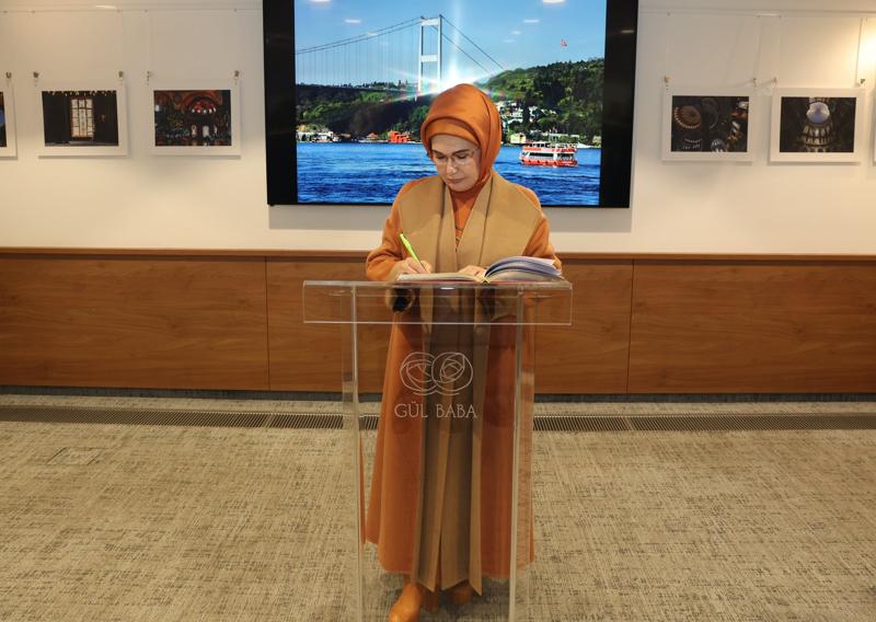 Emine Erdoğan, katılımcılarla ve basın mensuplarıyla fotoğraf çektirmesinin ardından Gül Baba Türbesi'nin anı defterine şunları yazdı: