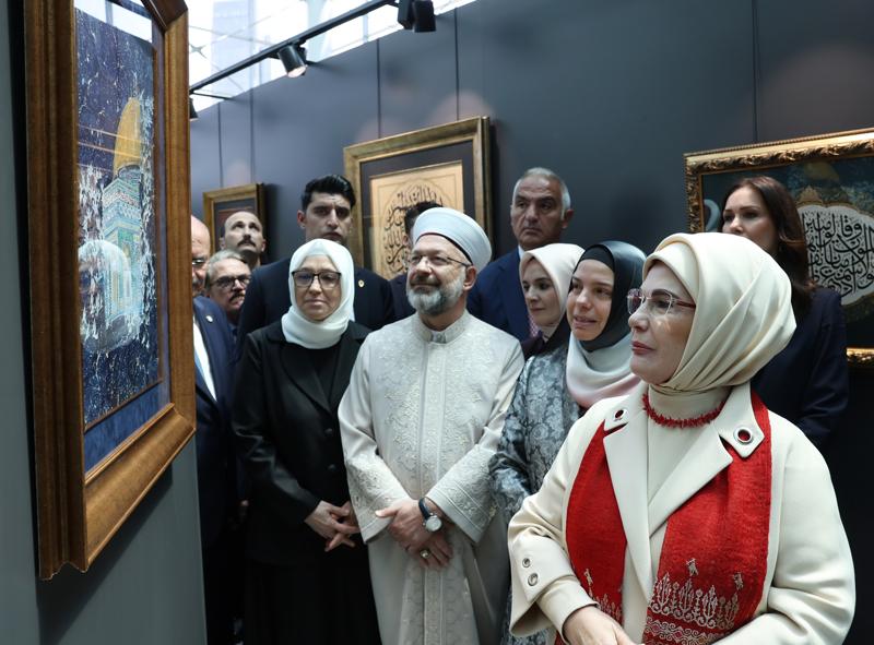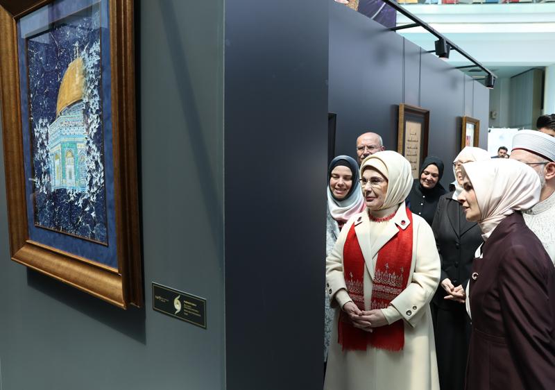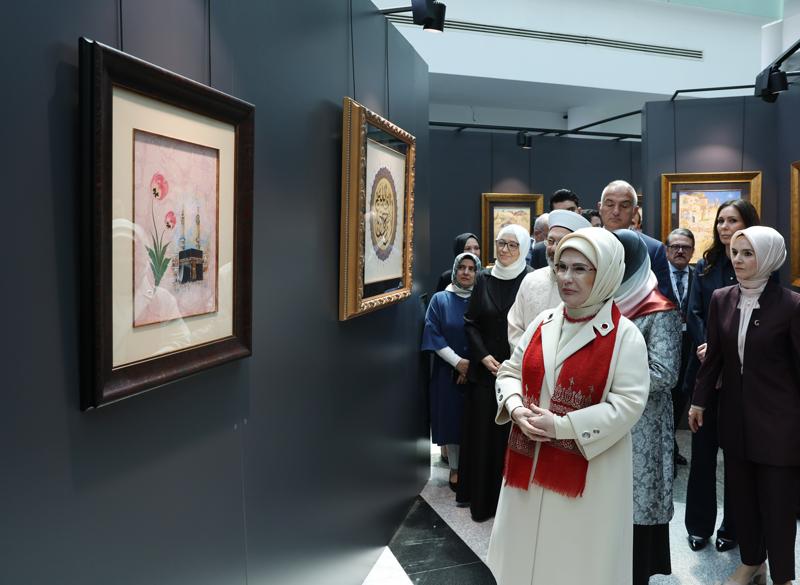 Emine Erdoğan, açılışın ardından hüsnühat, tezhip ve nakış sanatıyla oluşturulan ve Hz. Muhammed'in yaşadığı çağın önemli dönüm noktalarını betimleyen eserlerin yer aldığı "Türk İslam Sanatlarıyla Siyer-i Nebiye Yolculuk" sergisini gezdi.