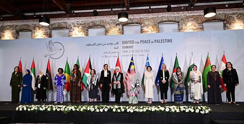 Lider eşlerinin her birinin ayrı ayrı güçlü, bir araya gelince ise çok daha güçlü bir sesi olduğunu belirten Emine Erdoğan, "Sözlerimizi, onlar için ve dünya için hemen şimdi ateşkes için birleştirelim. Gelin bu buluşmayı, sözden eyleme taşıyarak Filistin'de barış için bir inisiyatif haline getirelim. Çünkü ateşkes, öncelikli hedefimiz olsa da nihai hedef değil. Bütün dünyayı, aynı sesle Filistin'de ve İsrail'de kalıcı barışın sağlanması için çabalarımızı birleştirmeye çağıralım." diye konuştu.