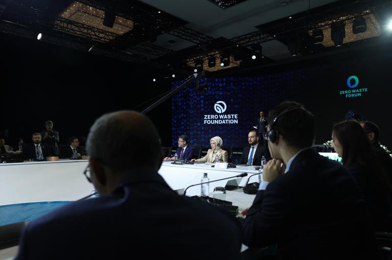 Türkiye'de 2017 yılında başlattıkları Sıfır Atık yolculuklarına, her kilometresine yeni bir boyut ekleyerek devam ettiklerini belirten Emine Erdoğan, "Mesela 'Gıdanı Koru Sofrana Sahip Çık' kampanyasını düzenleyerek gıda israfı konusunda büyük bir farkındalık oluşturduk. Su stresi altında bir ülke olarak Ulusal Su Verimliliği Seferberliğini başlattık. Tüm bunların yanında, başkanlığını yürüttüğüm, Birleşmiş Milletler Sıfır Atık Danışma kurulumuzla da, dünyadaki en iyi sıfır atık uygulamalarını uluslararası gündeme taşıyoruz." diye konuştu.
