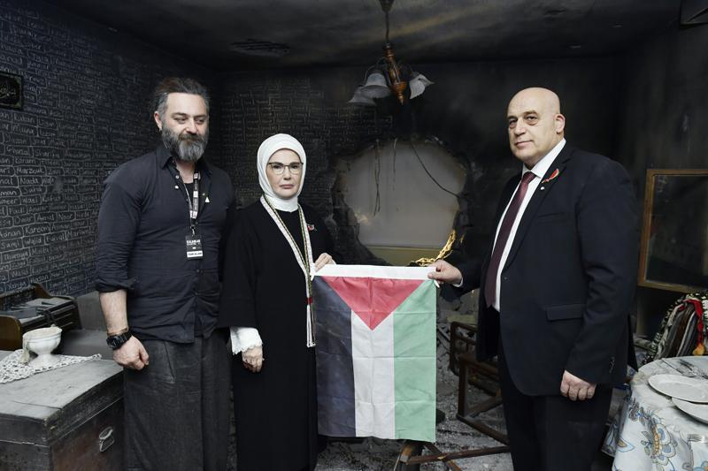 Emine Erdoğan, "Yakın bir zamanda ülkemizde de misafir ettiğimiz Filistinli yönetmen Basel Adra, 'Başka Toprak Yok' belgeselini çekmemiş olsaydı, Filistin halkının 70 yılı aşkın süredir yaşadığı trajediyi dünyaya kendi sesiyle anlatması mümkün olmayacaktı. İşte bu yüzden, bundan sonra Filistin'de tek bir kuşun kanadı kırılsa, tek bir ağacın yaprağı koparılsa, tek bir çiçek bile solsa mutlaka sanata konu olmalıdır." dedi.