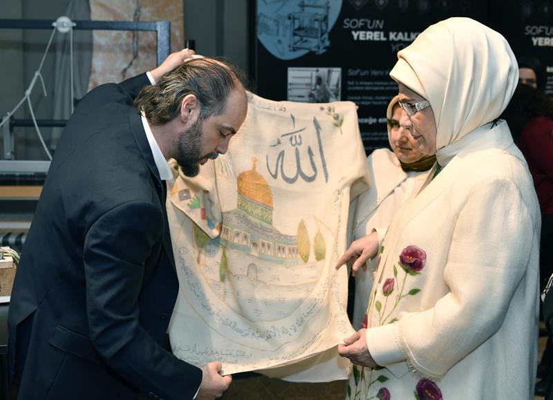 Emine Erdoğan, emeği geçenleri içtenlikle kutladığını belirterek, "Biliyorum ki bu büyük çaba, millet olarak köklerimizi diri tutmak, bizi biz yapan özümüzü ve kültürümüzü geleceğe taşımaktır. Ayrıca, projede yer alarak 'sof dokuma usta öğretici' ünvanı kazanan hünerli kadınlarımızı gönülden tebrik ediyorum. Ankara'nın sof mirası artık onlara emanettir." diye konuştu.