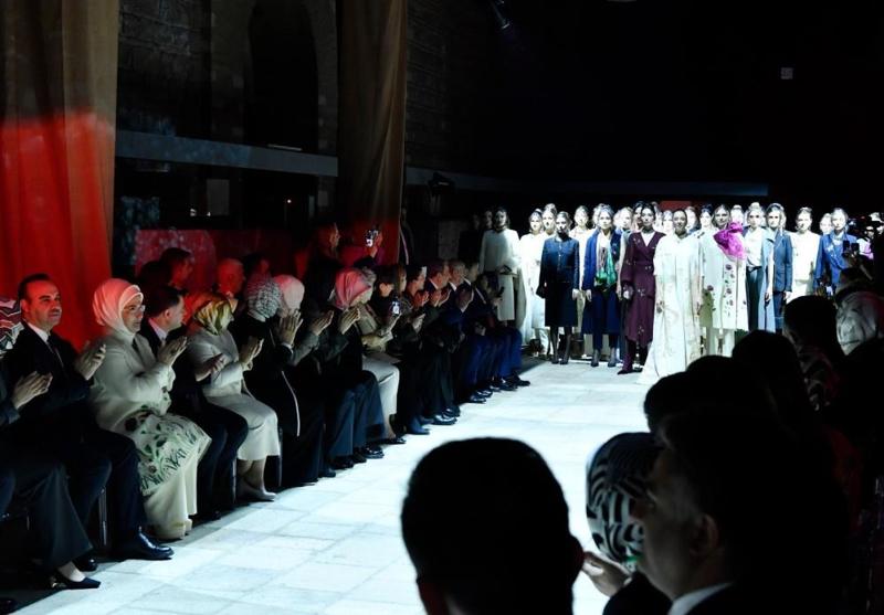 Konuşmaların sonrasında Erdoğan, sunuculuğunu Ebru Akel'in üstlendiği ve sof kumaşından 35 kıyafetin gösteriminin yer aldığı defileyi izledi.