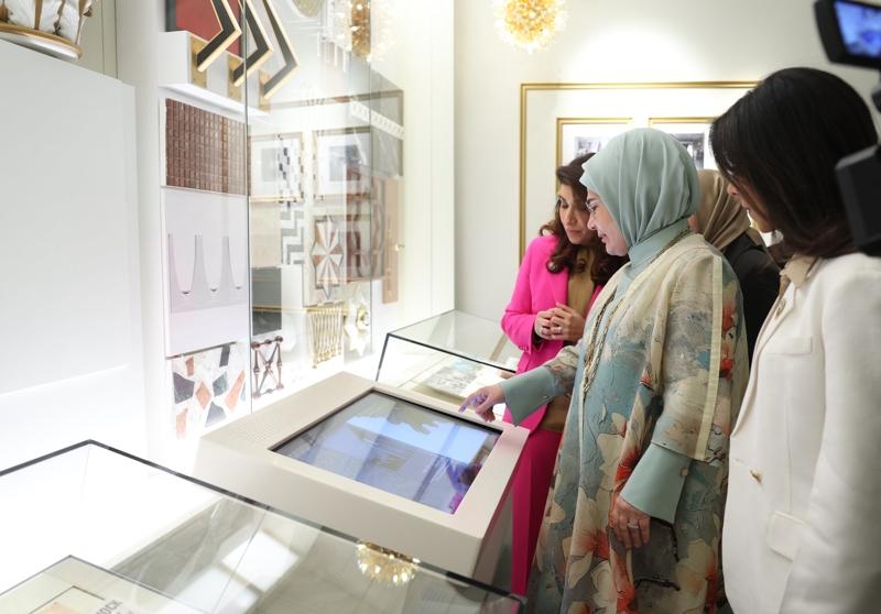 Sarayın müze bölümünü gezen Emine Erdoğan, müzenin mimarisi, yapılış süreçleri ve Irak'ın işgalinden sonra sarayın yeniden inşasına ilişkin bilgi aldı, sarayı ziyaret eden önemli devlet adamlarının fotoğraflarını inceledi.