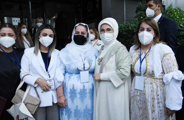 Emine Erdoğan, sadece Türkiye'de değil dünyanın her yerinde kadınların eğitim haklarından ekonomik, siyasi veya toplumsal nedenlerle mahrum olduklarına dikkati çekti.