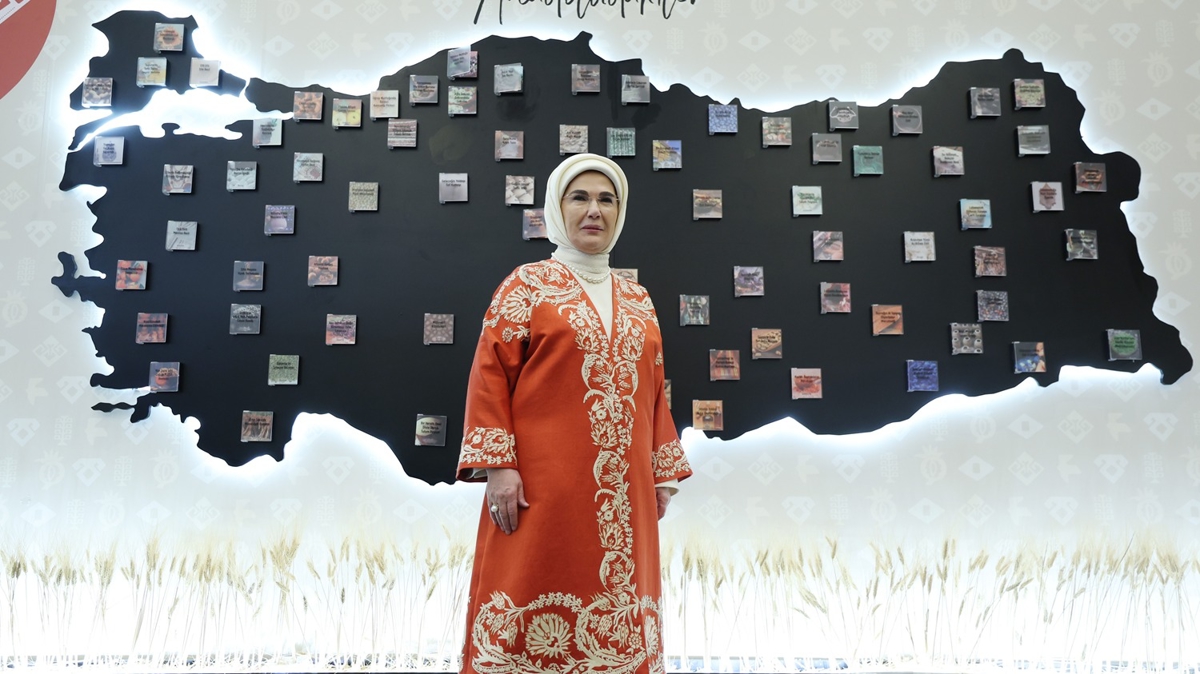 Emine Erdoğan, burada yaptığı konuşmada, haziran ayında Anadolu'nun hikayesini tüm dünyaya anlatmak üzere bir yola çıktıklarını hatırlatarak, bugün, bu anlamlı yolculuğun başka bir durağında bir araya geldiklerini söyledi.