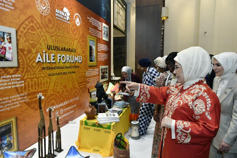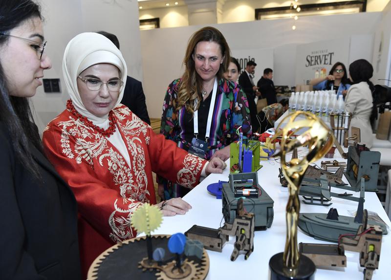 Forum alanının girişinde, Emine Erdoğan'ı Aile ve Sosyal Hizmetler Bakanı Mahinur Özdemir Göktaş ve eşi karşıladı.