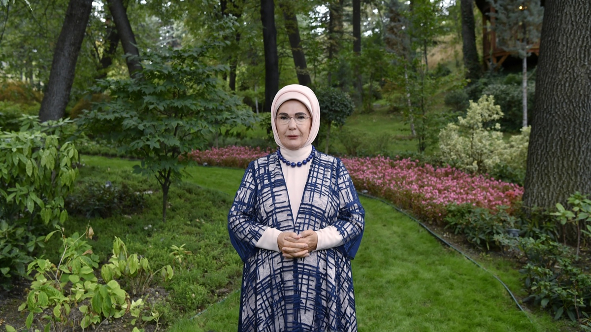 Böyle bir yeryüzünü çocuklar aşkına kurmaya yönelik atılan her adımın çok değerli olduğuna dikkati çeken Emine Erdoğan, "Evlatlarımızın, savaşın karanlık gölgesiyle dünyalarından eksilen her rengi yeniden yerine koyma sorumluluğunu yüreğimizde hissediyoruz." dedi.