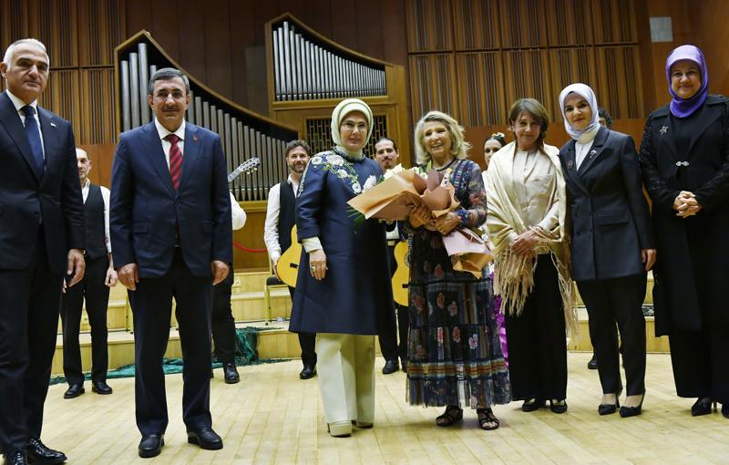 Emine Erdoğan, gösterinin ardından Sevilla Cristina Heeren Flamenko Sanatı Vakfı Başkanı Cristina Heeren'e ve dansçılara çiçek takdim etti.