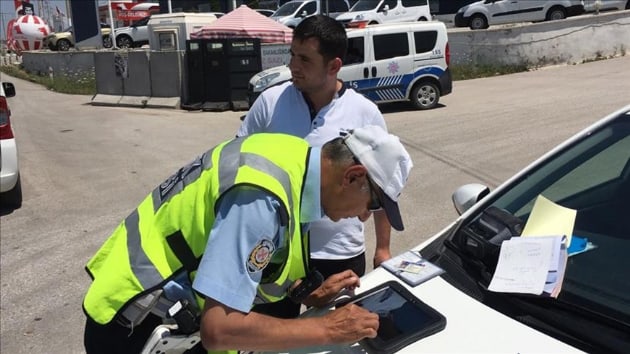 Silivri'de, engelliler için ayrılan yollara araç park edenlere para cezası kesildi.