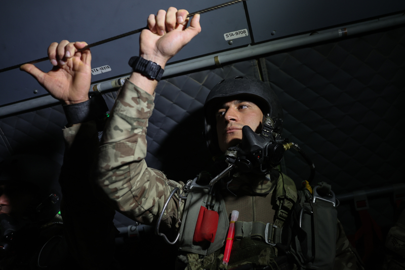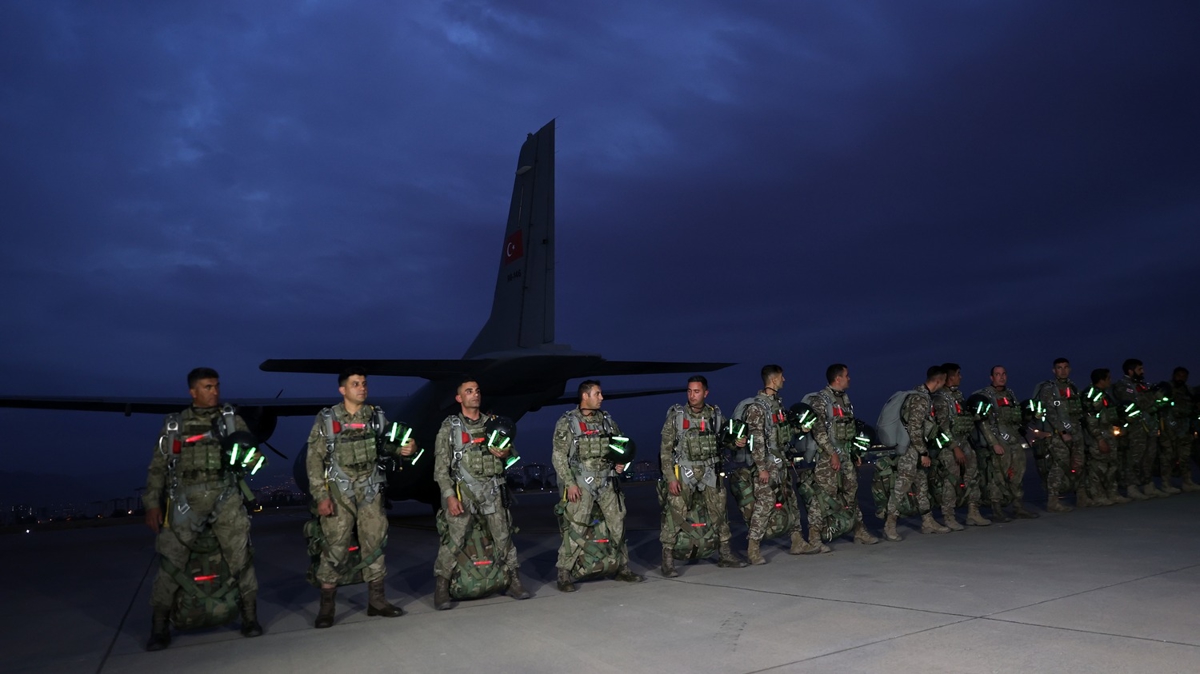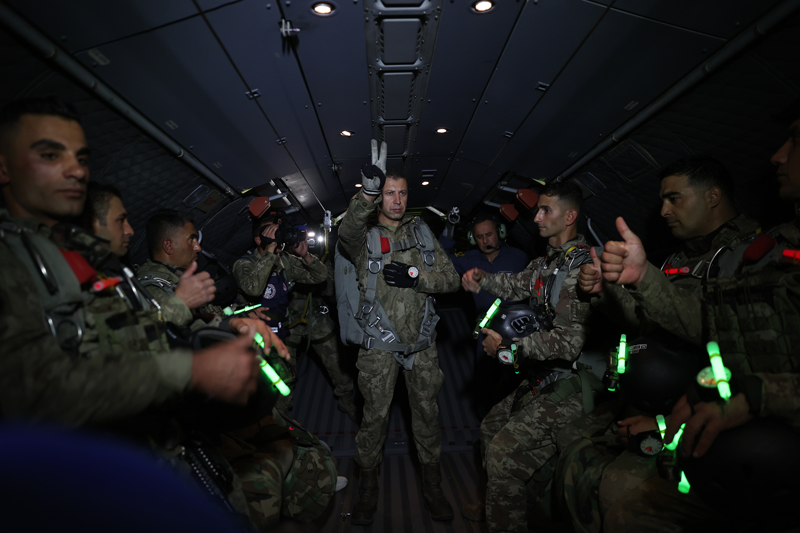 12. Hava Ulaştırma Ana Üs Komutanlığında 18 kişilik komando timi CN-235 CASA tipi uçağa binerek Şehit Teğmen Hasan Bak Atma ve Atlama Sahasına paraşütle iniş yapıp, yarın temsili yapılacak operasyon öncesinde sahanın güvenliğini aldı.