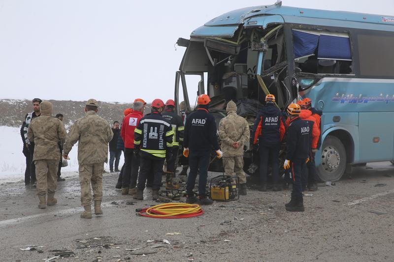 İran'a ait yolcu otobüsü ve iki tırın karıştığı kazada, ilk belirlemelere göre 1 kişi öldü, 4 kişi yaralandı.