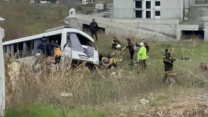 Yeşilkent Mahallesi Nazım Hikmet Bulvarı'nda seyir halindeki servis midibüsü, kontrolden çıkarak yol kenarındaki alana devrildi.