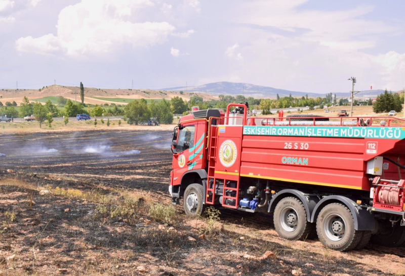 Eskişehir-Kütahya kara yolu Kümbet Kavşağı yakınlarındaki tarlada başlayan anız yangını, ağaçlandırma sahasına sıçradı.