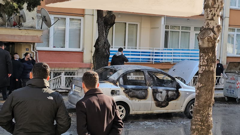 Polis ekipleri çevrede güvenlik önlemi alırken, itfaiye ekipleri de otomobildeki yangını söndürdü.