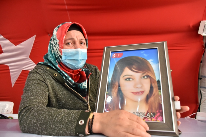 Ellerinde çocuklarının fotoğrafıyla bekleyişini sürdüren annelerden Aydan Arslan, kızı Aysun'a kavuşmak için eyleme devam edeceğini söyledi.