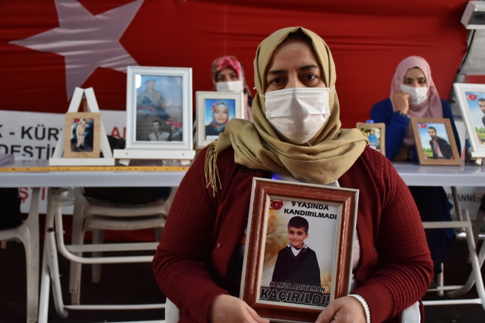 Evladının daha 9 yaşında olduğunu kaydeden Adıyaman, "Çocuğum daha küçüktü. Ayakkabısını ben giydiriyordum, çantasını ben taşıyordum. Ben yandım, dayanamıyorum. İnsanlık bu mu? HDP çocuğumu götürdü PKK'ya teslim etti. Oğlumu HDP'den istiyorum." şeklinde konuştu.