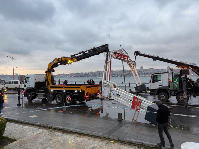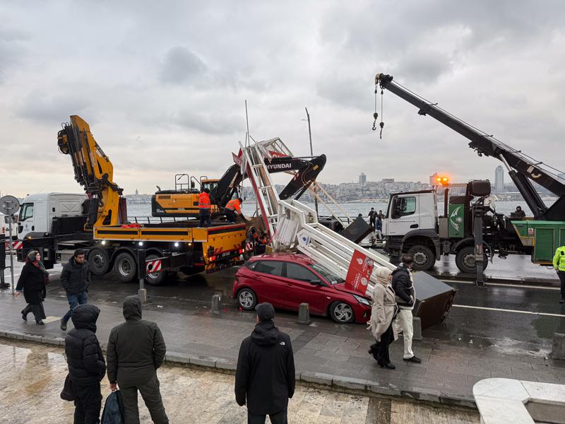 Üsküdar Harem Sahil Yolu'nda ilerleyen tırın üzerinde bulunan ekskavatör, yol takına çarptı.