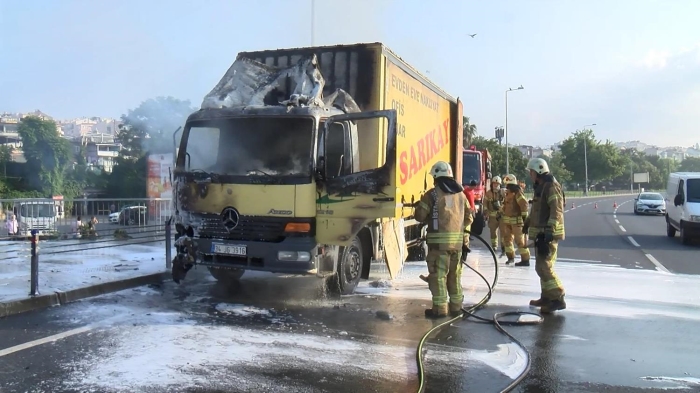 Sahil Yolu Kennedy Caddesi'nde sabah saat 07.00 sıralarında Yunus Kızıltepe'nin kullandığı 34 JG 3916 plakalı kamyon arıza yaptı. Kamyonun motor kısmından dumanların yükselmesi üzerine sürücüsü tarafından yol kenarında durdurulan kamyon, kısa süre içerisinde alev aldı. Durum itfaiye ve polis ekiplerine bildirildi. İtfaiye ekiplerinin müdahalesi sonrası kamyondaki yangın söndürüldü. Yangın nedeniyle kamyon, kullanılamaz hale geldi. Öte yandan kamyonun yanma anları, çevredekilerin cep telefonu kamerasına yansıdı.