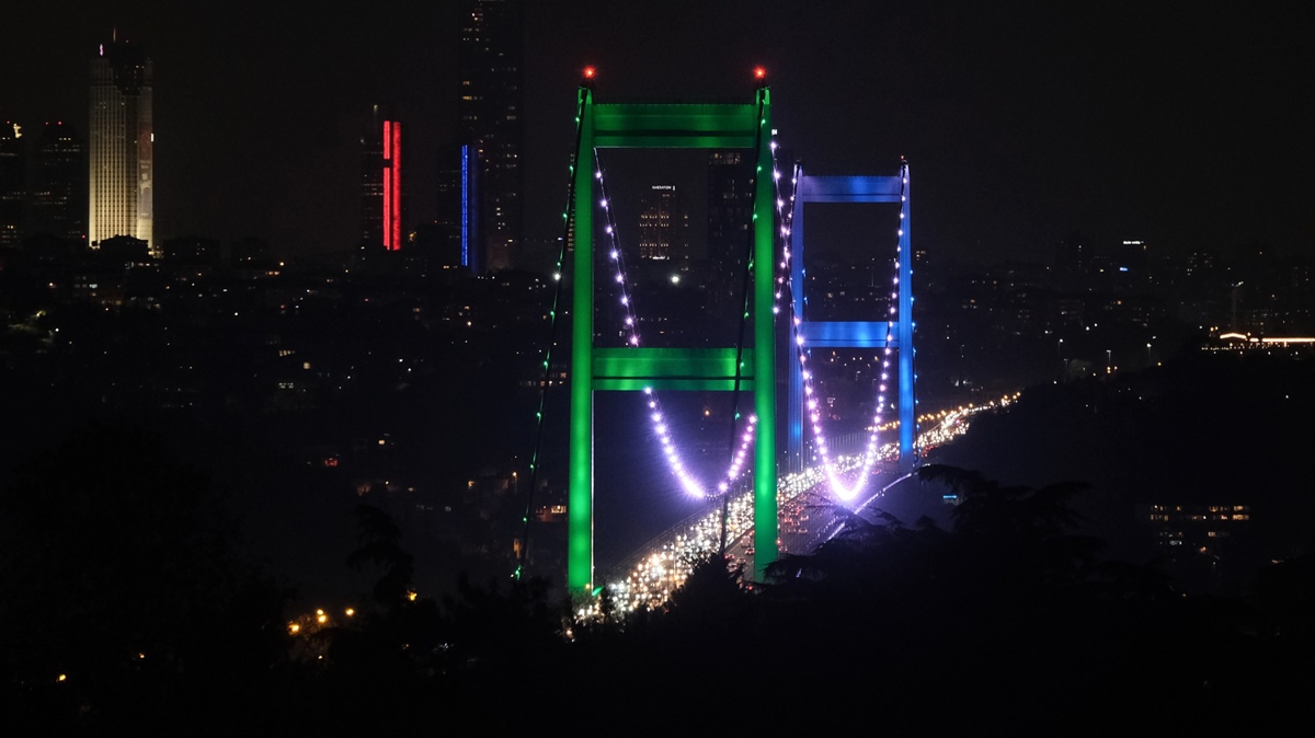 FSM Köprüsü, "18 Kasım Özbekistan Milli Bayrak Günü"ne dikkati çekmek amacıyla mavi, yeşil ve beyaz renge büründü.