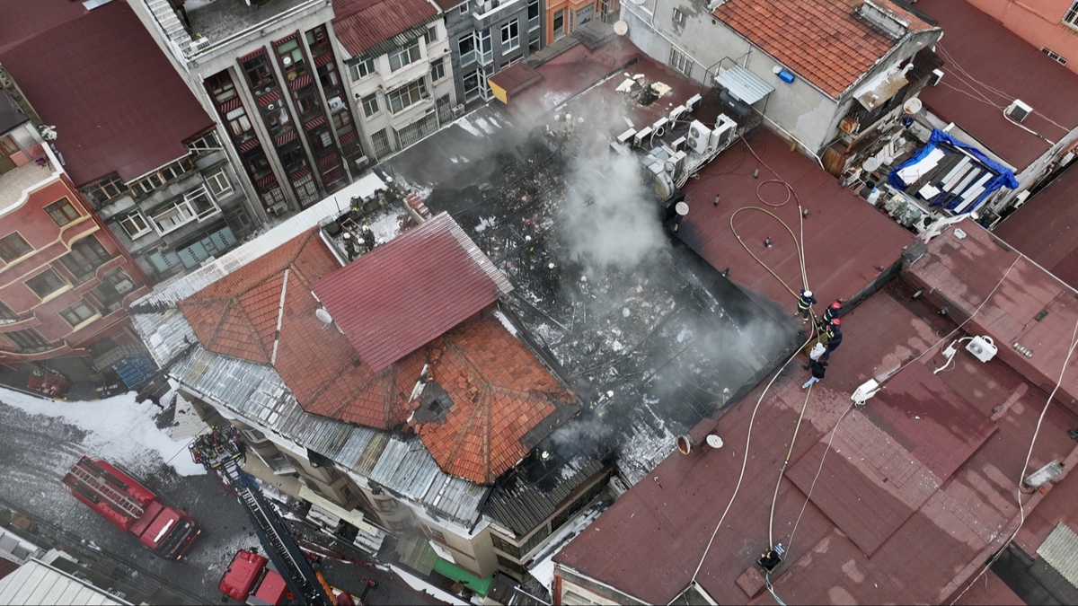 Binanın 3, 4 ve çatı katına da yayılan yangın nedeniyle çevredeki cadde ve sokaklar trafik akışına kapatıldı.