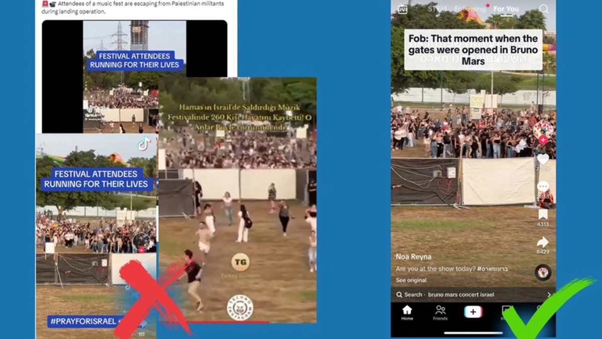 Sosyal medya hesaplarından paylaşılan "Festivalde canlarını kurtarmak için koşuşan İsrailliler" videosunun gerçeği yansıtmadığı ortaya çıktı.