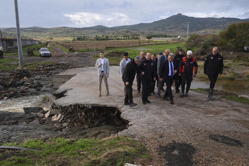 Elban, AFAD Başkanı Ali Hamza Pehlivan ile Foça'da Kaptanoğlu'nun sel sularına kapıldığı Bucak Deresi'nde incelemelerde bulundu.