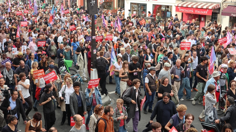 Fransa'da genel seçimlerin galibi olan sol ittifakın ortak başbakan adayını göreve getirmeyen Cumhurbaşkanı Emmanuel Macron'un azledilmesini isteyen binlerce kişi gösteri yaptı. Göstericiler, 'Macron istifa' yazılı pankartlar taşıdı, 'Macron istemese de çalışanların onuru ve daha iyi bir dünya için buradayız', 'Macron defol, Fransızlar seni istemiyor artık' ve 'Adalet olmadan barış olmayacak' sloganları attı.
