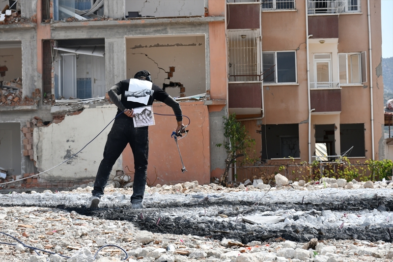 İki yardımcısıyla Defne ilçesi Armutlu Mahallesi'ndeki enkaz alanına iç içe geçen tokalaşmış elleri çizen Legros, İsviçre Büyükelçiliği ve Türkiye Fransız Kültür Merkezi desteğiyle çalışmalarını sürdürüyor.