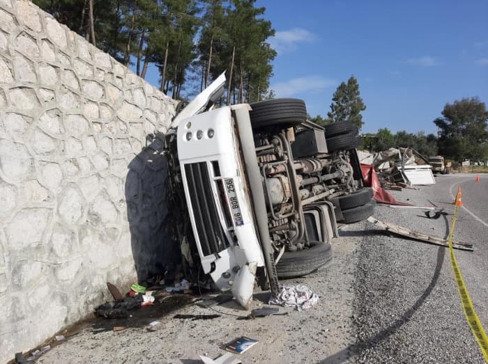 Kaza, Fethiye-Antalya karayolunun Sarıyer mevkisinde saat 10.00 sıralarında meydana geldi. Antalya'dan Fethiye yönüne giden Yavuz Görmez yönetimindeki 08 BOR 256 plakalı kamyonun freni boşaldı. Yokuş aşağı kontrolden çıkan hırdavat yüklü kamyon, virajda beton duvara çarpıp, devrildi. Şoför mahalinde sıkışan Görmez, olay yerinde hayatını kaybetti. İtfaiye ekipleri tarafından sıkıştığı yerden çıkartılan Görmez'in cansız bedeni Fethiye Devlet Hastanesi morguna kaldırıldı. Polis, kazayla ilgili soruşturma başlattı.