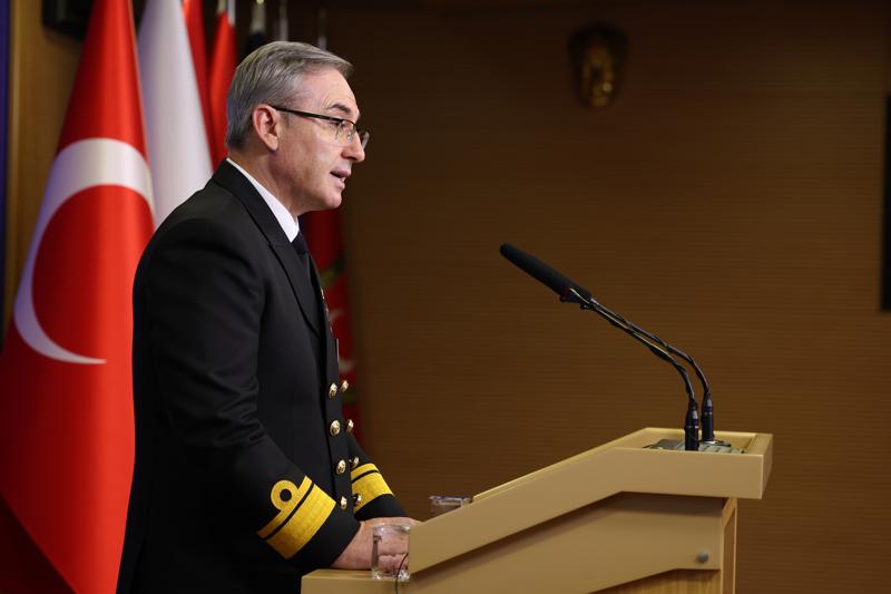 MSB Basın ve Halkla İlişkiler Müşaviri ve Bakanlık Sözcüsü Tuğamiral Zeki Aktürk, bakanlıkta düzenlenen haftalık basın bilgilendirme toplantısında konuştu.