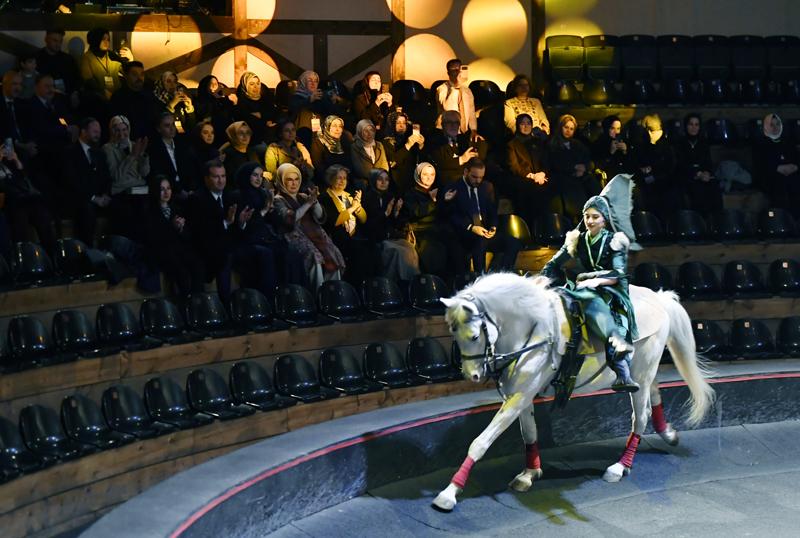 Ziyaret sırasında platoda yer alan yönetmen koltuğuna geçen Erdoğan, daha sonra sanatçı Arslanbek Sultanbekov'un kısa bir performansını dinledi, ayrıca buradaki atlı dans gösterisini izledi.