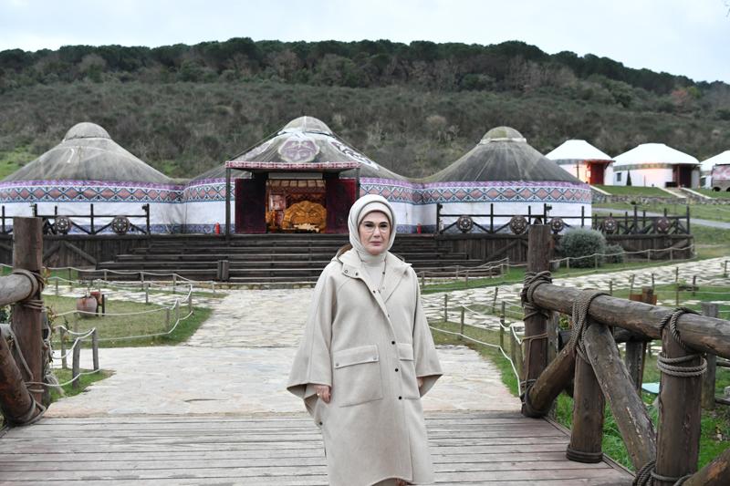 Gezisi sırasında Emine Erdoğan'a, Kuruluş Orhan dizisinin yapımcısı Mehmet Bozdağ ile eşi Zeynep Peker Bozdağ da eşlik etti.