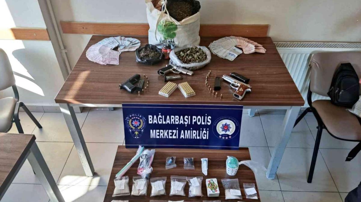 Bir süre işyerini izleyen bekçiler dükkanı kapatıp çıkan 4 kişiyi durdurmak istedi. Kaçmak için otomobile yönelen N.A.(24), Y.K.(24), Ö.K.(32) ve R.D.(23) kıskıvrak yakalandı. Osmangazi İlçe Emniyet Müdürlüğüne bağlı ekiplerden destek isteyen bekçiler, çıkarılan arama izninin ardından dükkanın içindeki gizli bölmeyi keşfetti. İçeriye giren ekipler gizli bölmede ve dükkanda arama yaptı. Şüphelilerin üzerinde, kaçmak istediği lüks otomobilde ve işyerinde 3 kilogram öğütülmüş esrar, 1 kilogram metamfetamin, 3 ruhsatsız tabanca, çok sayıda fişek, 58 kilogram kıyılmış tütün, çalıntı olduğu düşünülen elektronik cihazlar ve uyuşturucu ticaretinden elde edildiği tahmin edilen 55 bin lira nakit ele geçirdi.